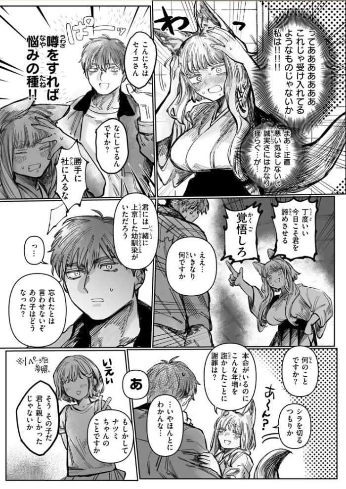 ・ある村の神社にはセイコさんというお狐様がいて、信心深い村人の前に度々姿を現していた。そんな彼女に恋をした少年・遥(はるか)。